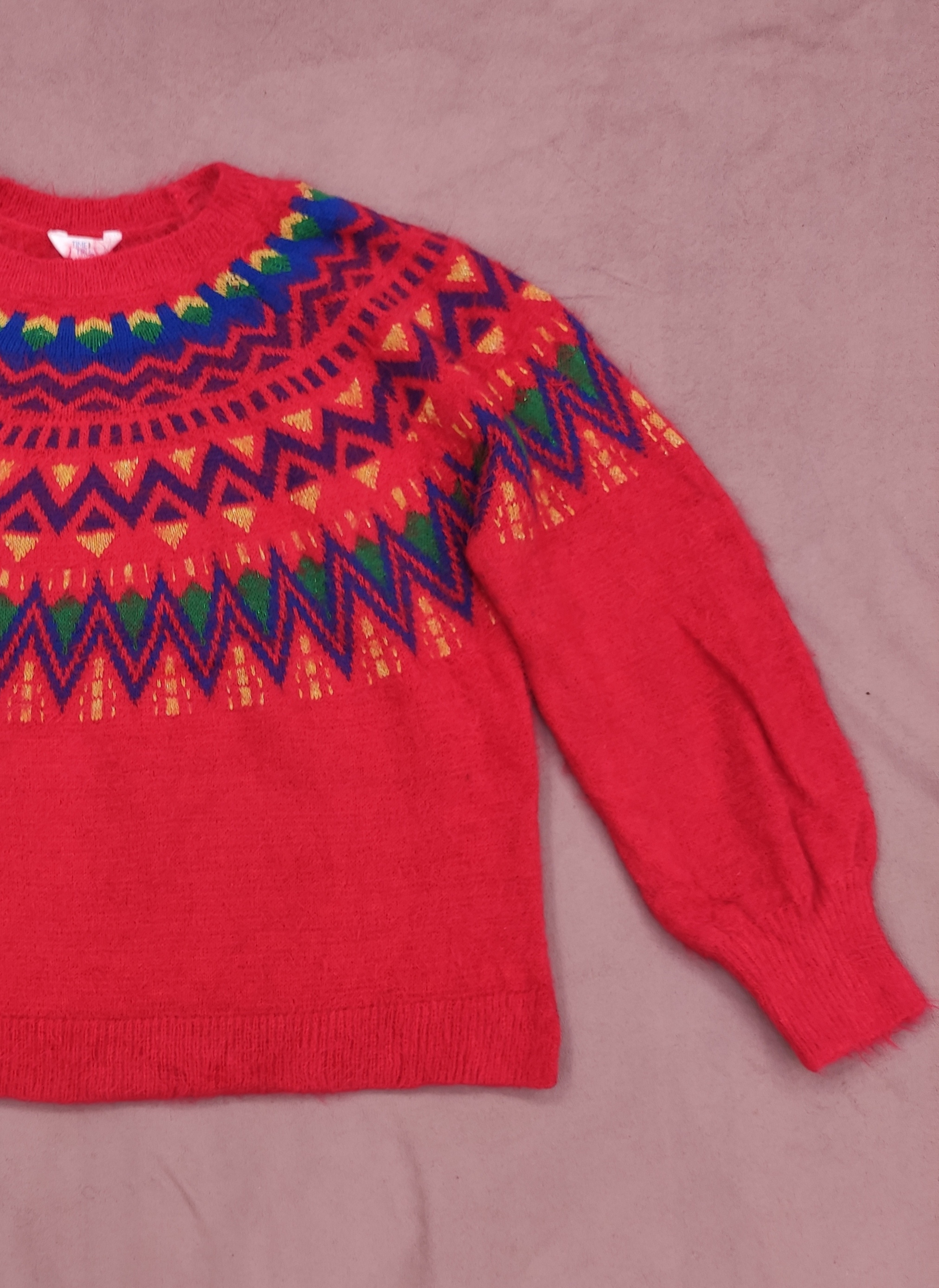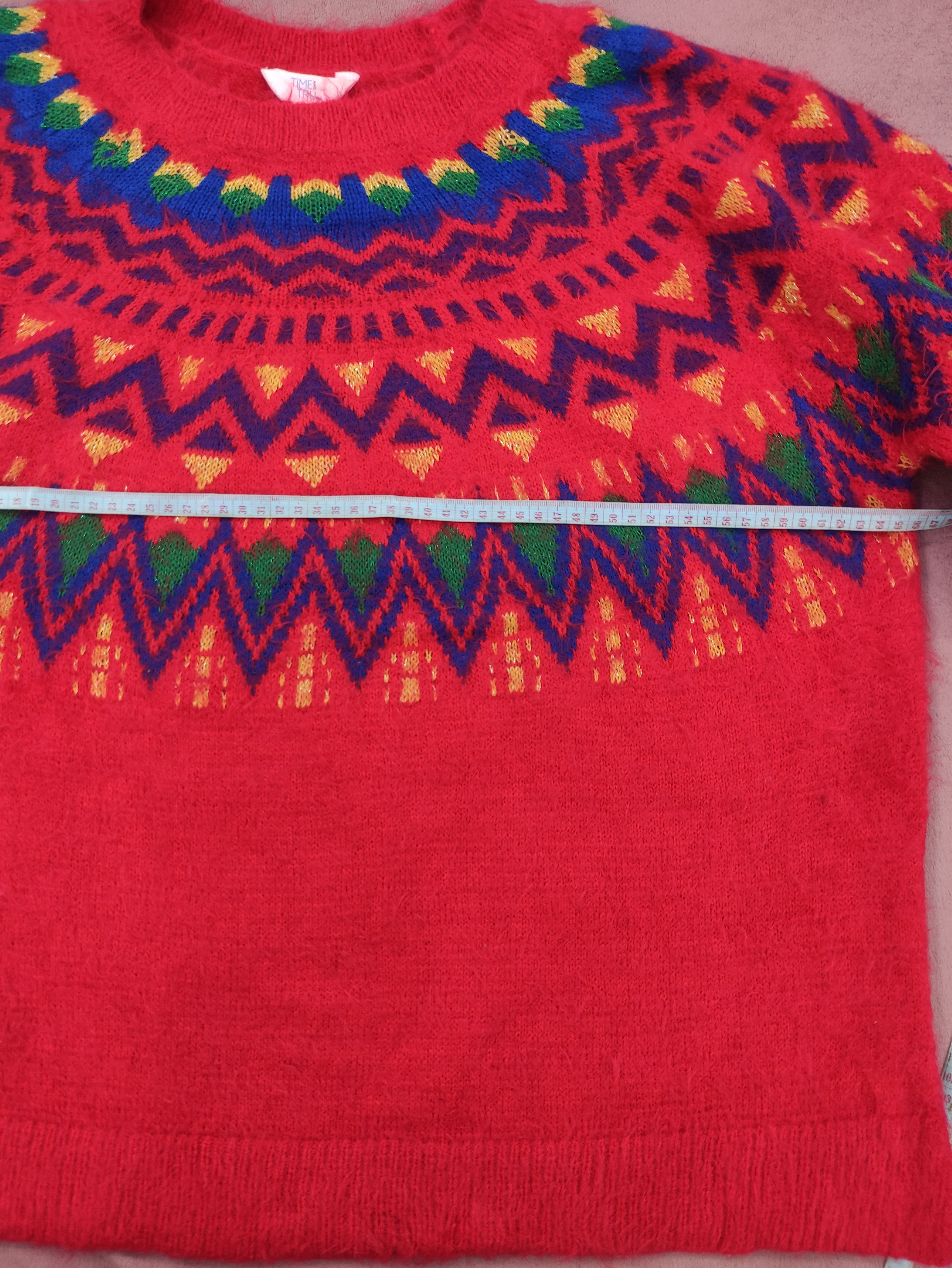 سایز: قد بافت از یقه تا پایین 63سانتی متر/عرض زیر بغل 66-65سانتی متر/دور بازو 21سانتی متر/