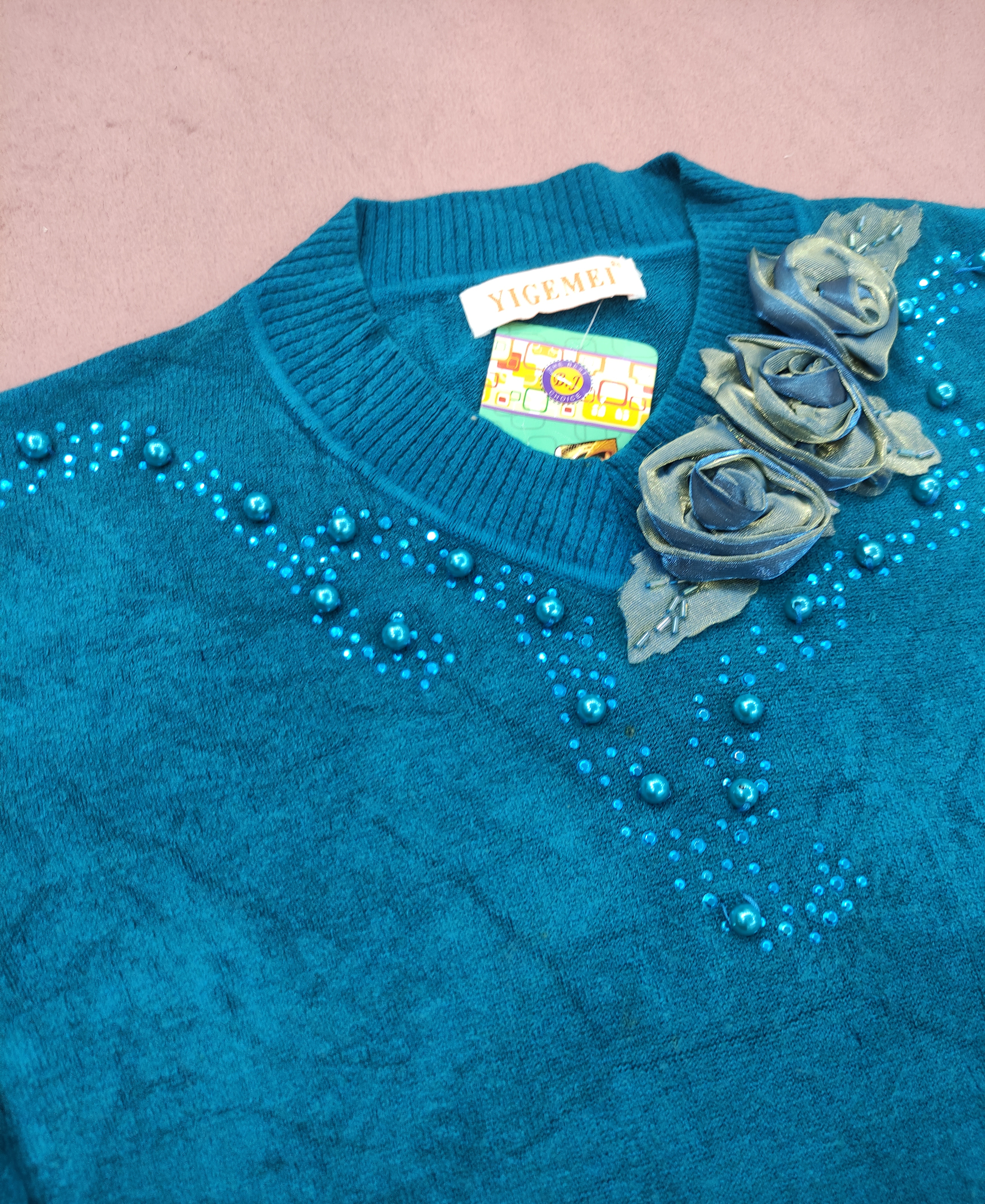 بافت آبی گلدوزی مجلسی 0138