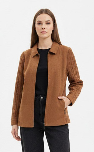 کت فوتر کوبیده قهوه ای کمرنگ 0071/ساده و شیک/مناسب سایز L و M/وارداتی