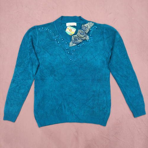 بافت آبی یقه باز 0069/آستین مجلسی/خیلی خاص و شیک/مناسب سایز M تا L/وارداتی