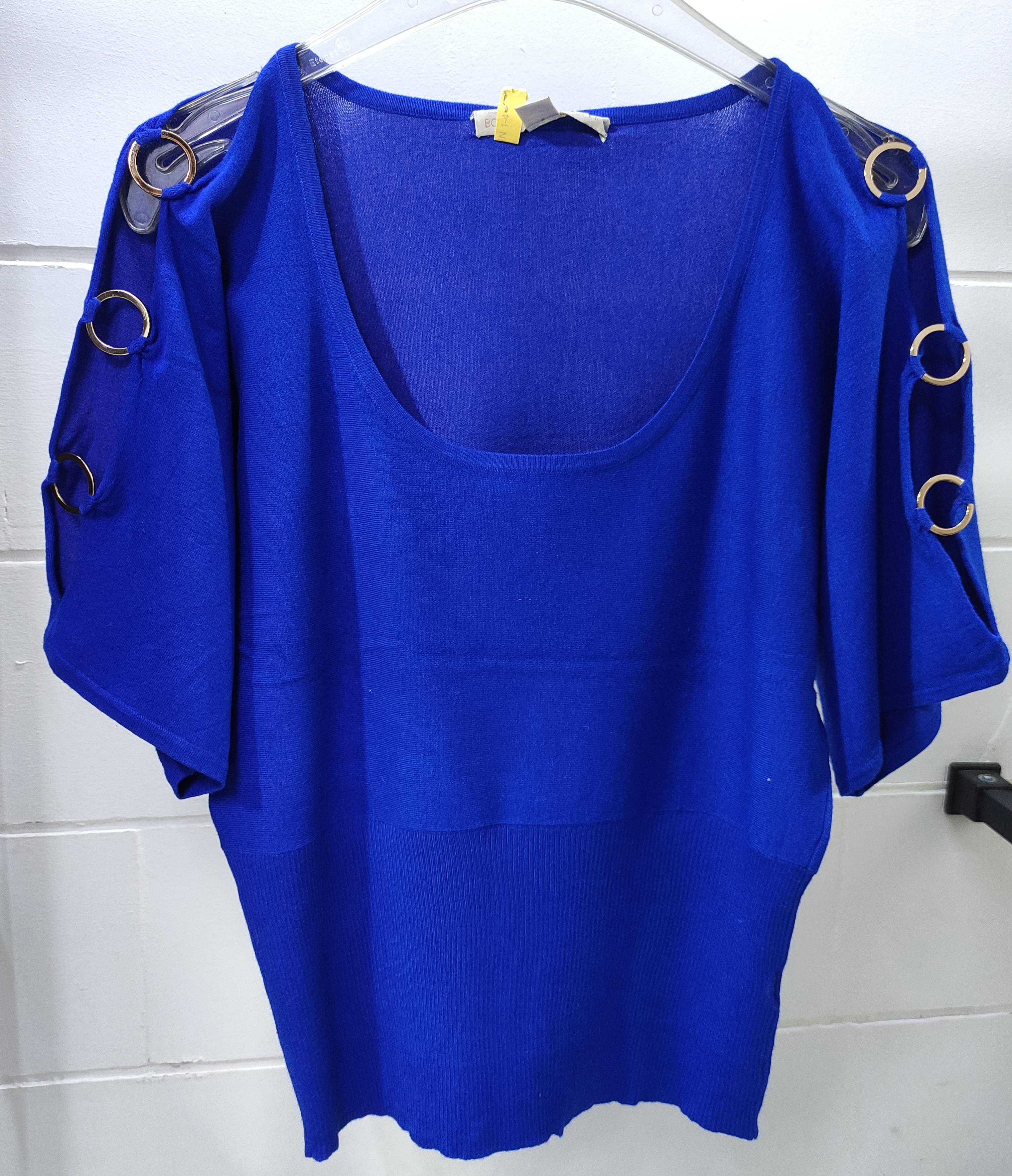 بافت آبی یقه باز 0069/آستین مجلسی/خیلی خاص و شیک/مناسب سایز M تا L/وارداتی